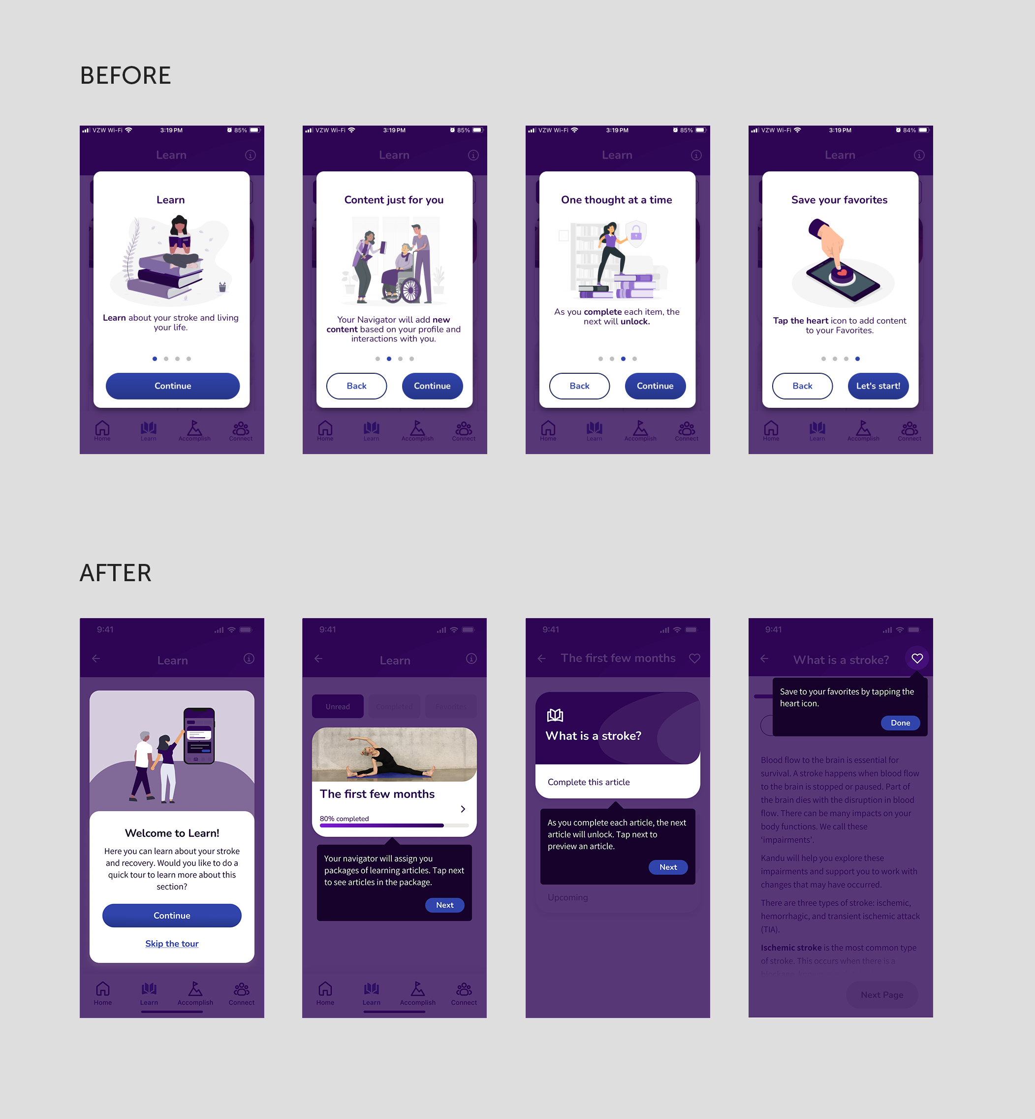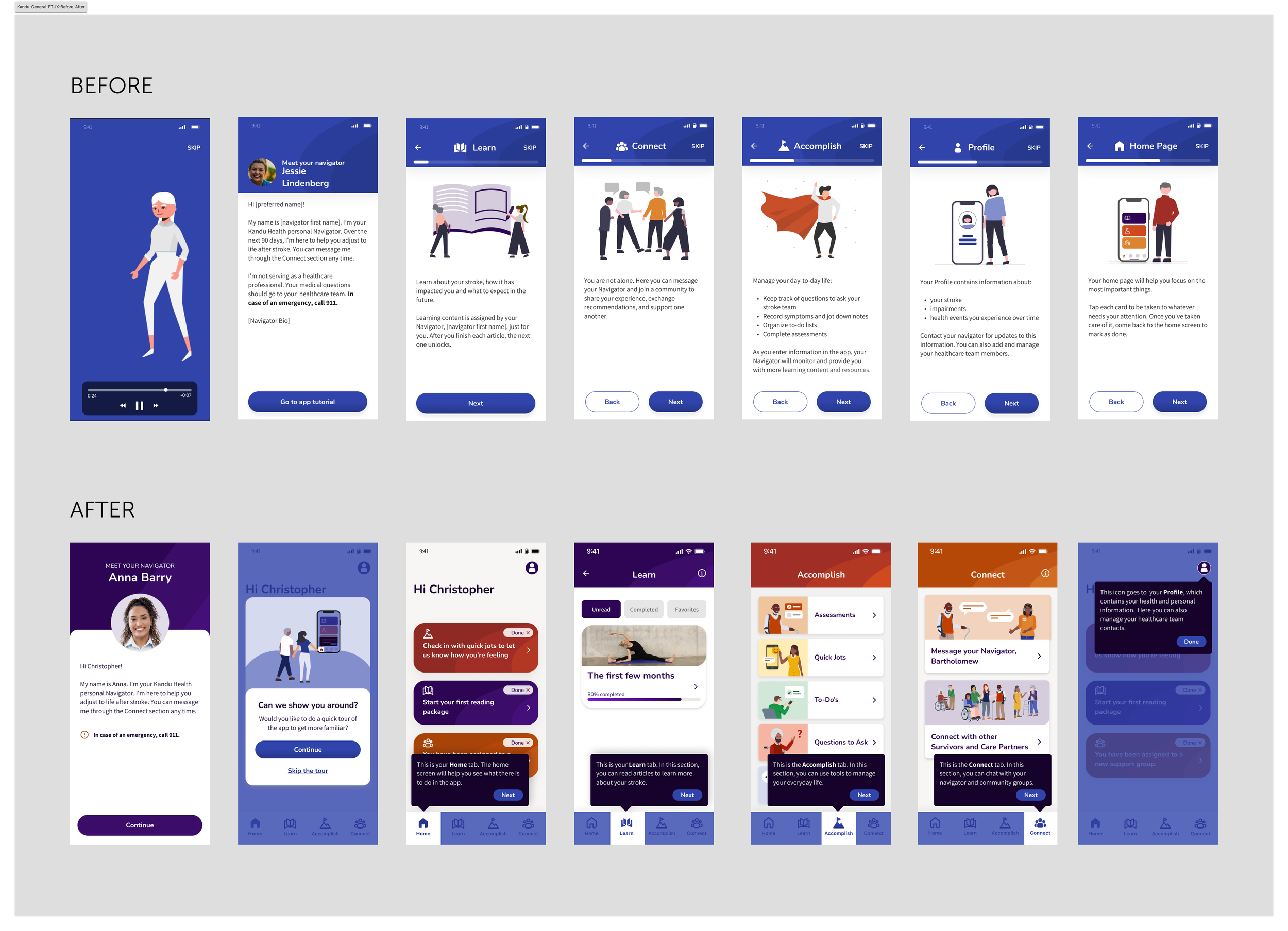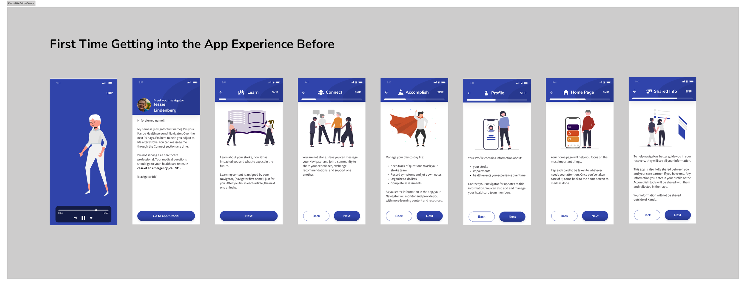 My goal was to create an experience for stroke survivors to get familiar with the Kandu app more easily and empower more self service of getting onto the app. Our user base has a lower familiarity with technology so this was an important feature to do effectively.