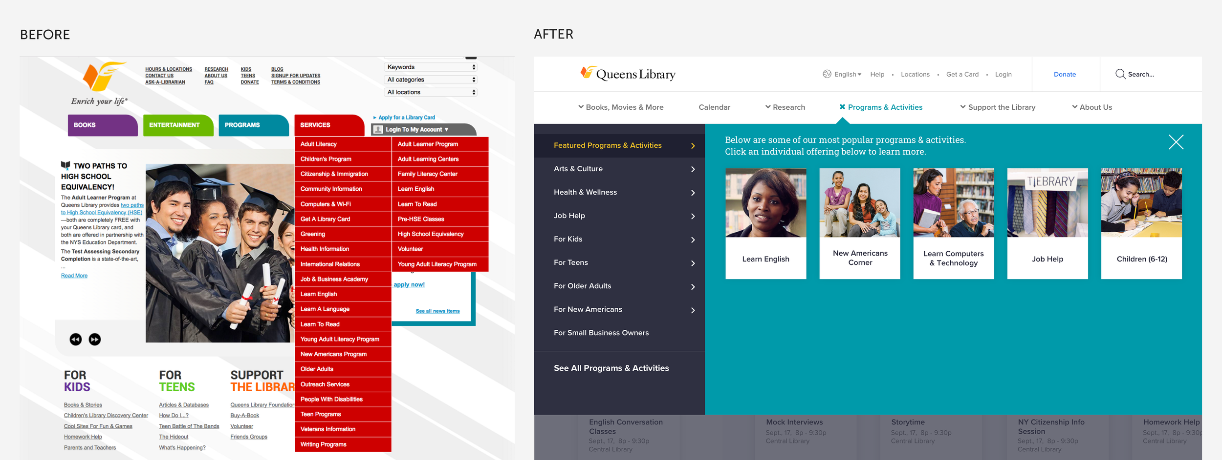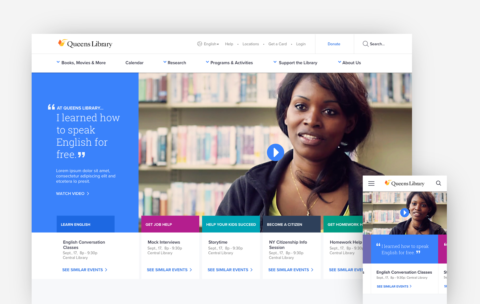 Note: Queens Library underwent a rebranding after this project which is reflected in the current live site.