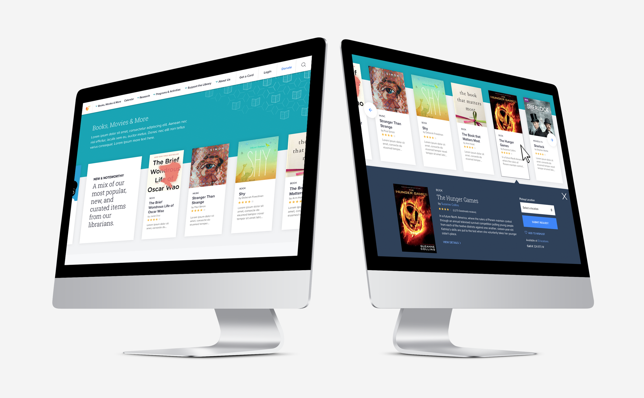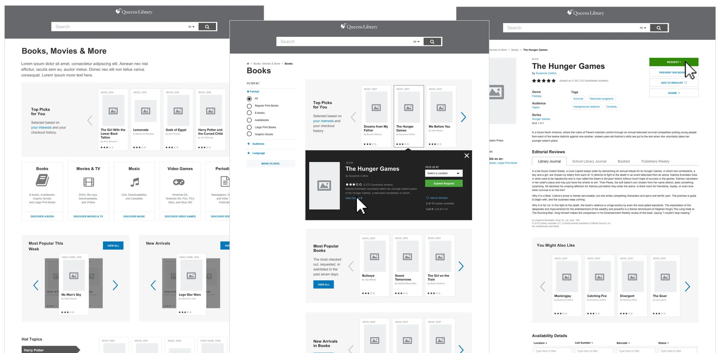 The Books, Movies & More section was designed to enhance content discovery, featuring curated, recommended, new, and popular materials within a multi-tiered, browsable category structure.