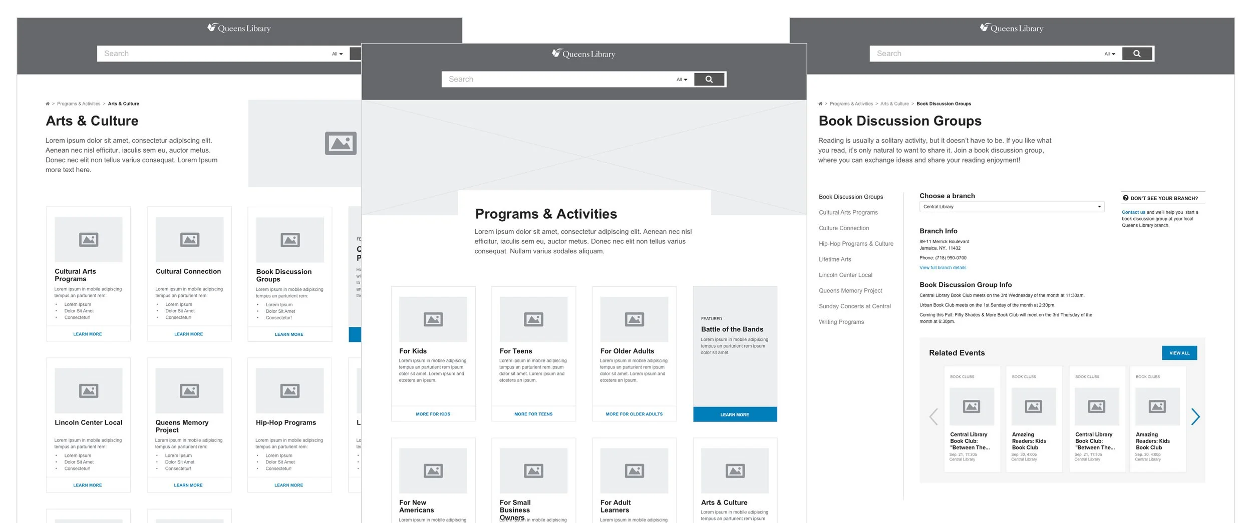 The discovery process informed our design strategy by defining user and business goals while auditing the existing website. Since Queens Library offers more than books—providing language classes, job training, and citizenship assistance—understanding users was essential to shaping the experience.